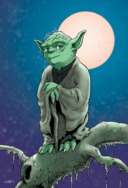 A small (4in x6in) full-color print featuring fanart of good ol' Yoda. This is a museum quality, UV coated, giclee print.