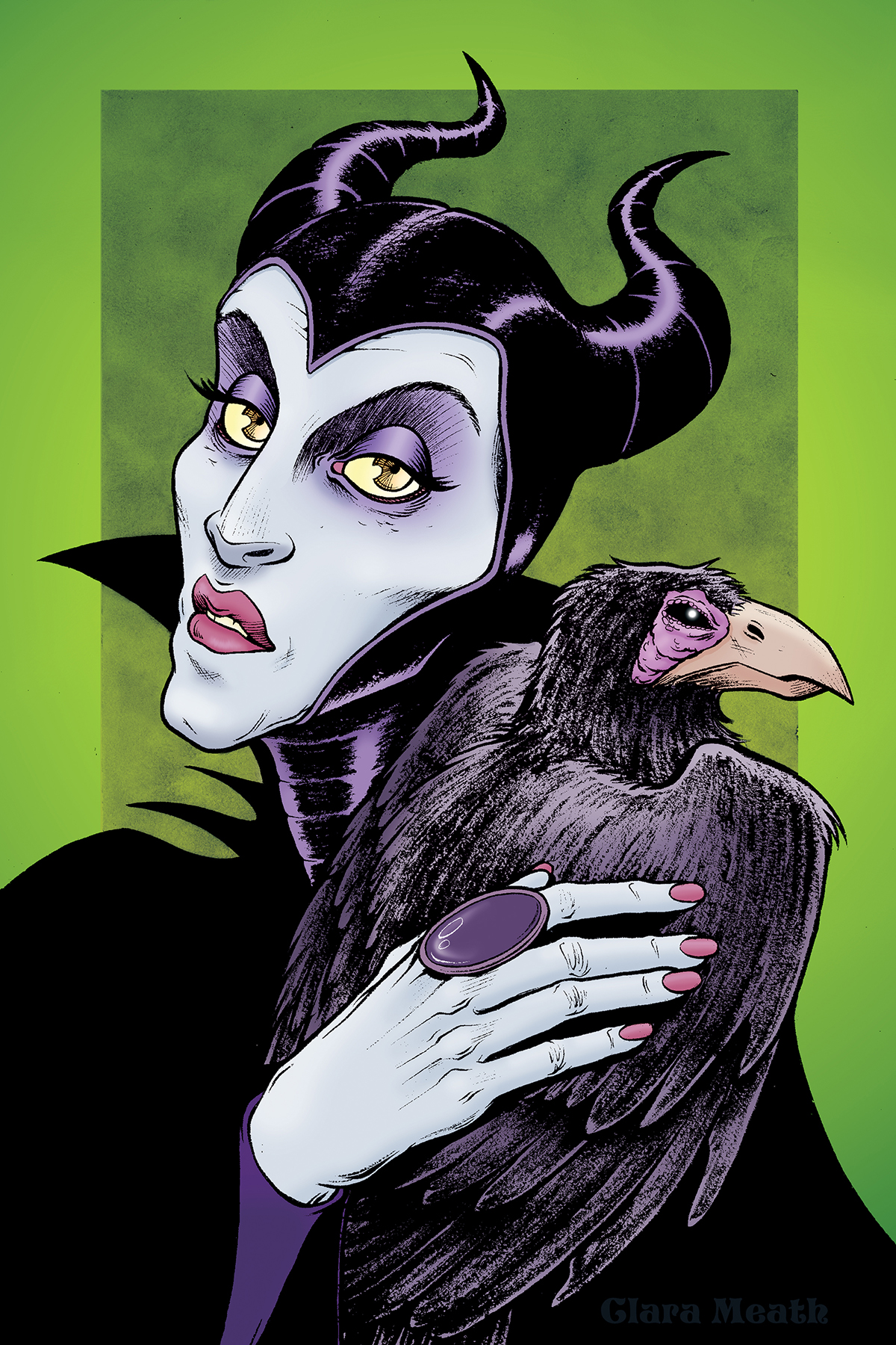 A small (4in x6in) full-color print featuring fan art of Maleficent from Disney's Sleeping Beauty. This is a museum quality, UV coated, giclee print.