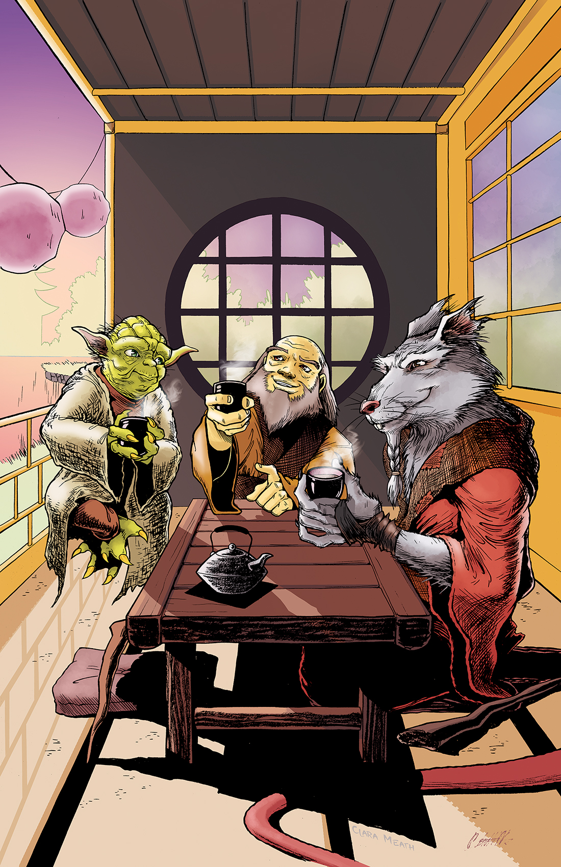 11x17 full color print. Originally a commissioned piece, the print depicts three masters--Yoda, Uncle Iroh, and Splinter, enjoying tea together.